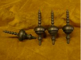 Links: Vlaggenstok voor een klassiek zeilschip met gedraaide knop en op de stok aangebrachte kabelaring (touwimmitatie ). Rechts: Tolletjes in ebbenhout