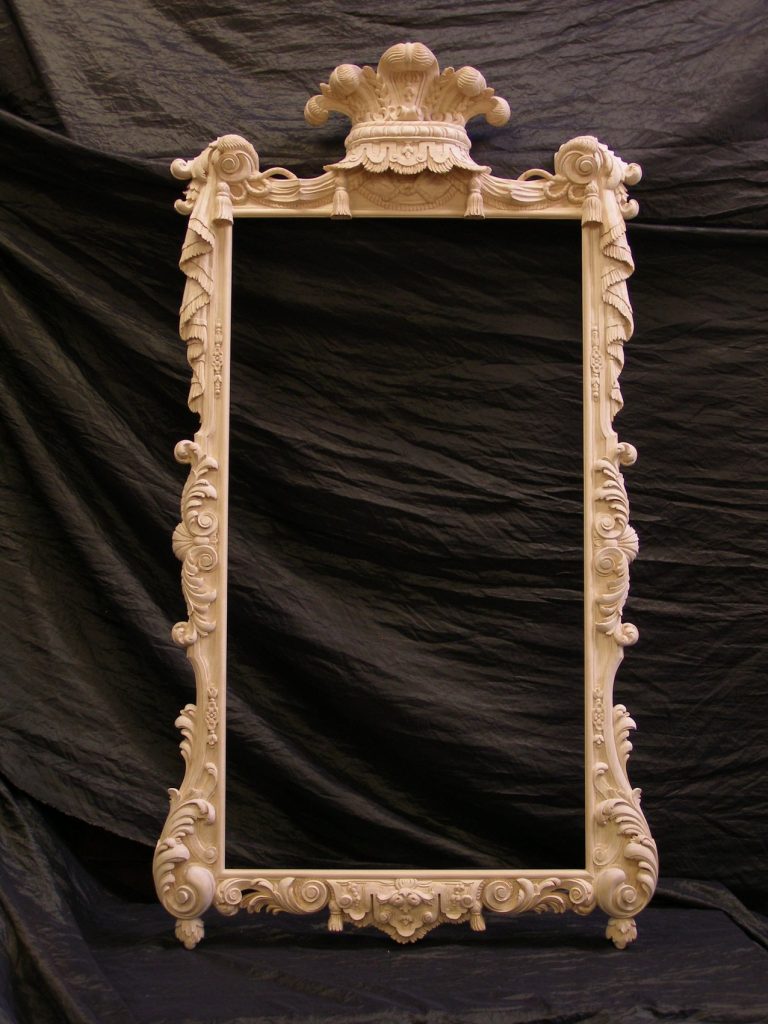 De lijst is gesneden in lindenhout en wordt later verguld. Op de foto’s is het origineel te zien en de kopie voordat deze werd verguld.