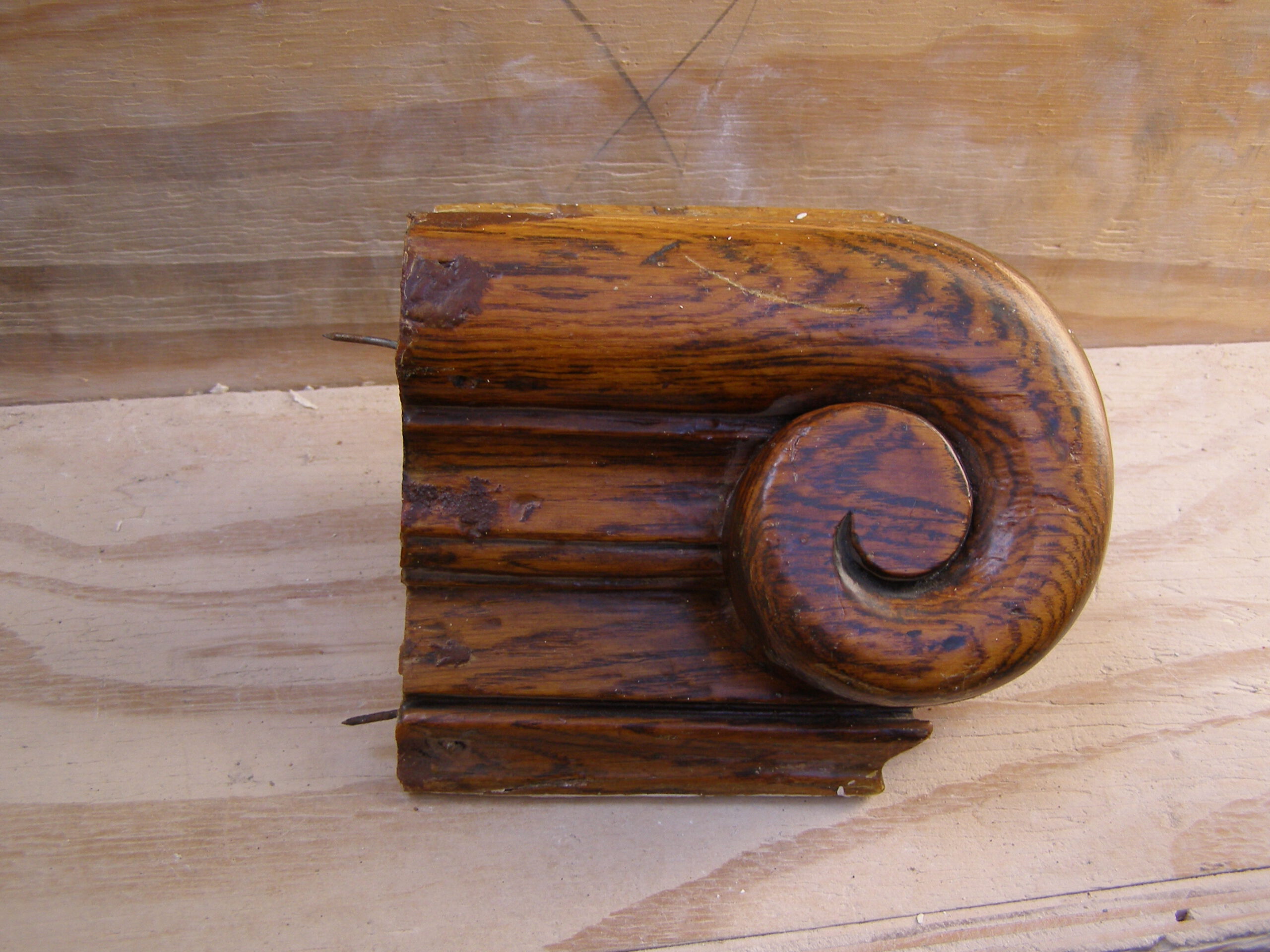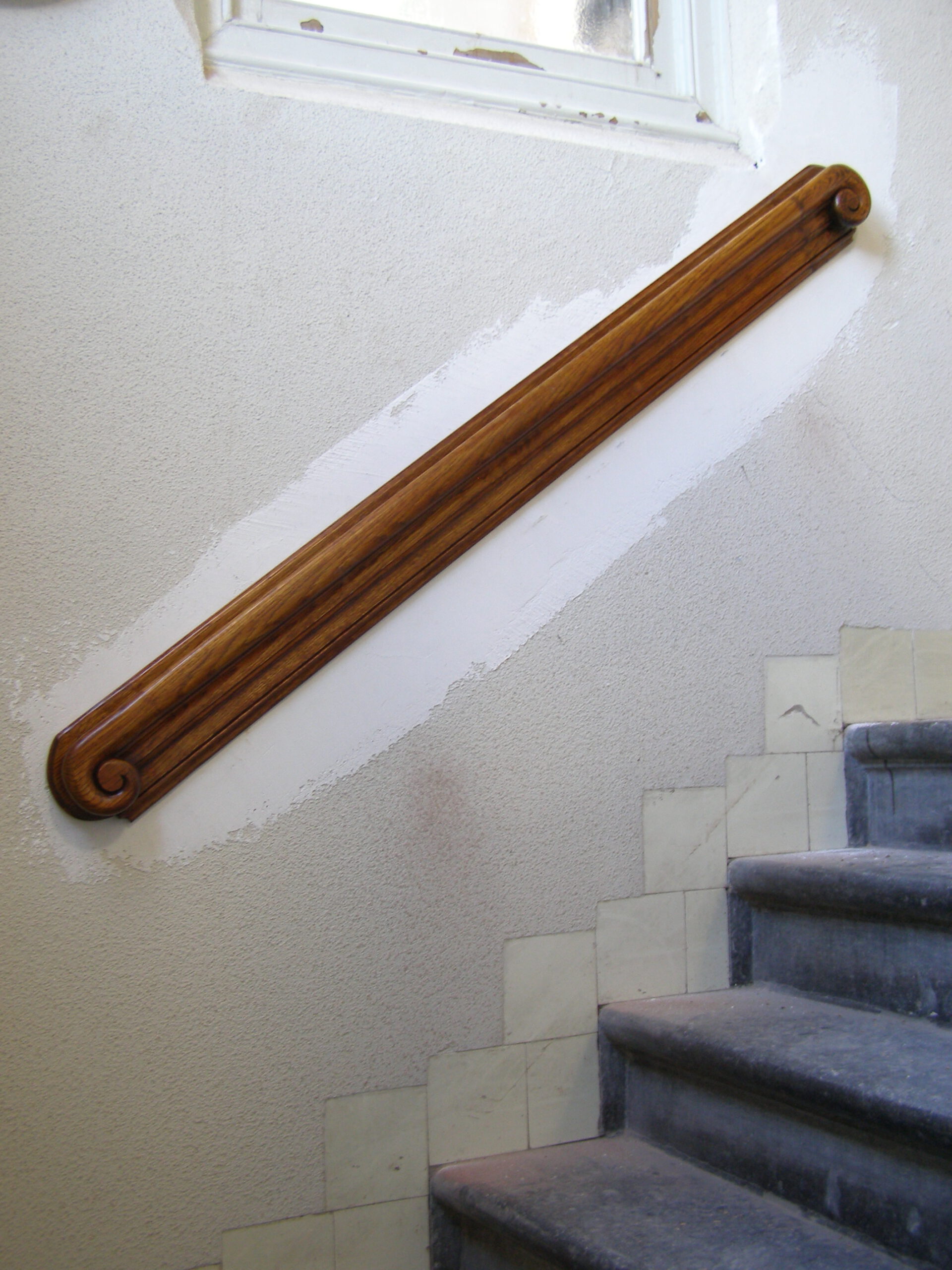 Na de verbouwing van het monumentale Stadhuis in Wageningen was een gedeelte van een trapleuning verloren gegaan. Alleen een eindkrul was nog aanwezig. In eikenhout is het missende deel van de trapleuning bijgemaakt en bevestigd aan de nog aanwezige eindkrul. De leuning is daarna op kleur gebracht en geplaatst.