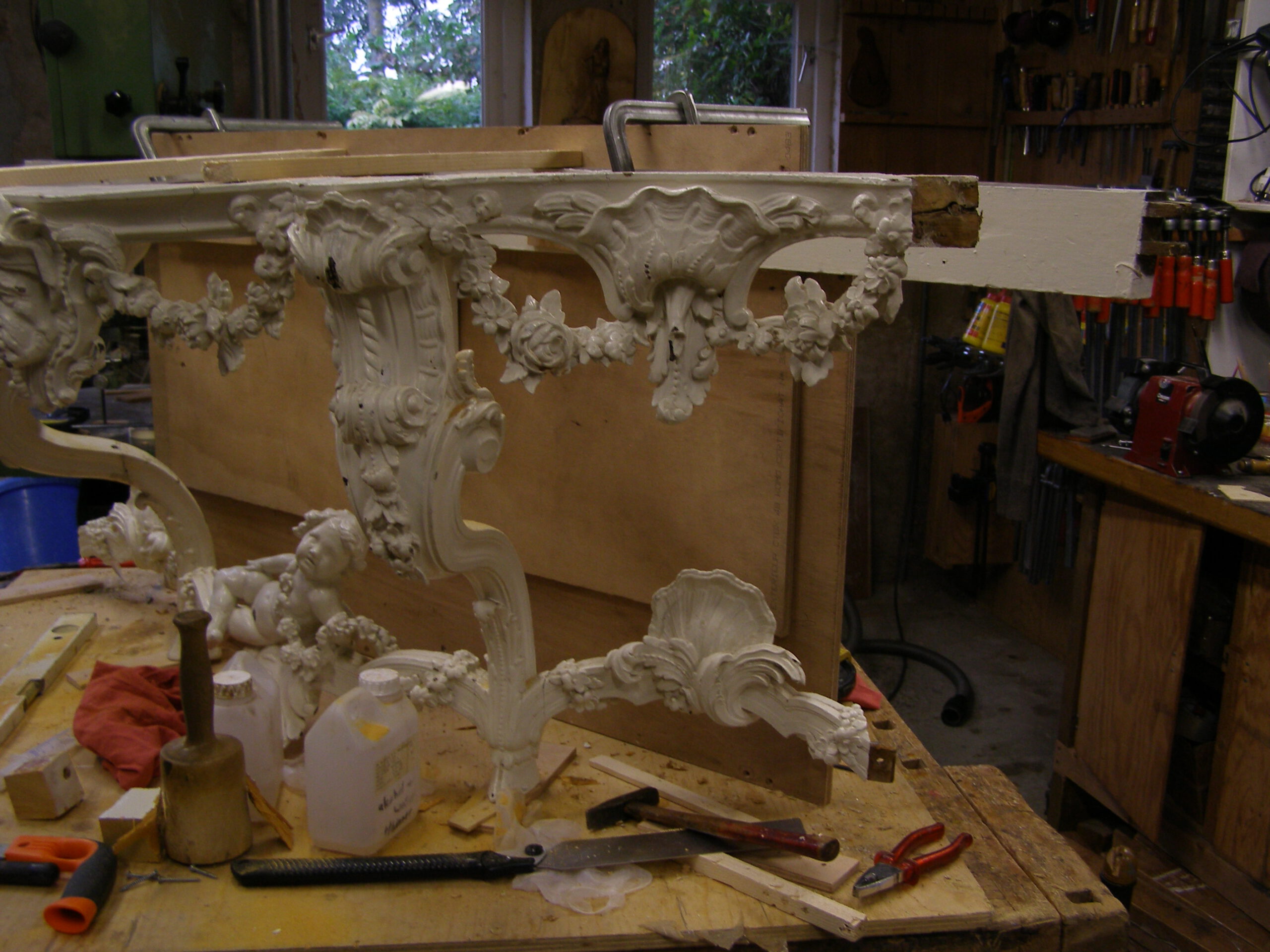 Restauratie van het snijwerk van een 18de eeuwse lijst in lindenhout.